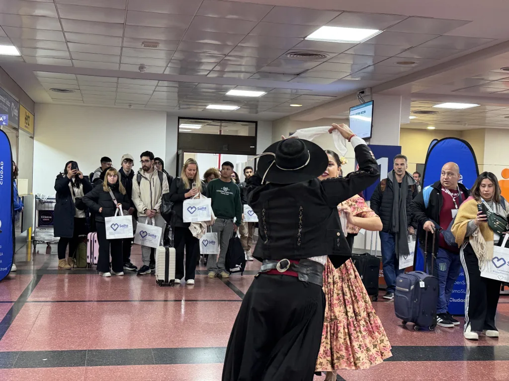 La Municipalidad dio la bienvenida a cinco vuelos provenientes de Buenos Aires con familias que eligieron Salta para disfrutar las vacaciones de invierno. Hubo música en vivo, danzas folclóricas y entrega de obsequios.