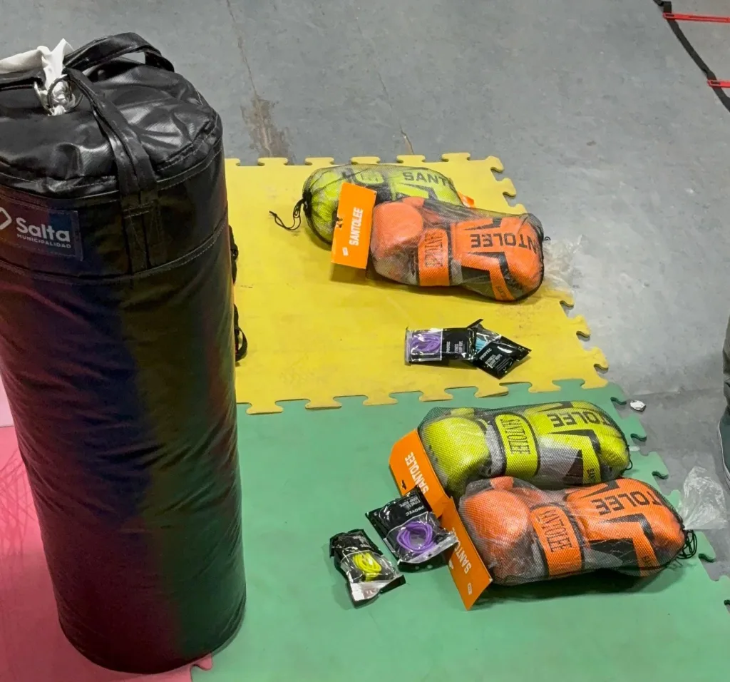 La escuela de boxeo recibió guantes, bolsas, sogas y escaleras de coordinación, mientras que la de fútbol se le entregaron distintos elementos necesarios para que los chicos puedan tener un mejor entrenamiento.