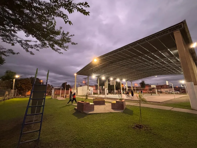 La Municipalidad colocó 21 nuevos reflectores LED en el predio ubicado en la zona sur de la ciudad. El lugar cuenta con un galpón con canchas de vóley y básquet, y con un amplio espacio verde donde funciona una cancha de fútbol.