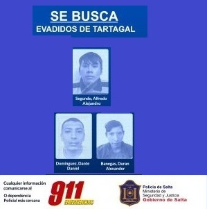 Cabot recordó que trabajan distintas áreas del Distrito de Prevención 4 en conjunto con áreas investigativas y operativas de Capital y las acciones se articulan desde el Centro de Coordinación Operativa en lograr la recaptura de los otros tres evadidos: Adrián Alexander Banegas Durán de 29 años; Alfredo Alejandro Segundo de 30 años; y Dante Daniel Domínguez de 37 años.